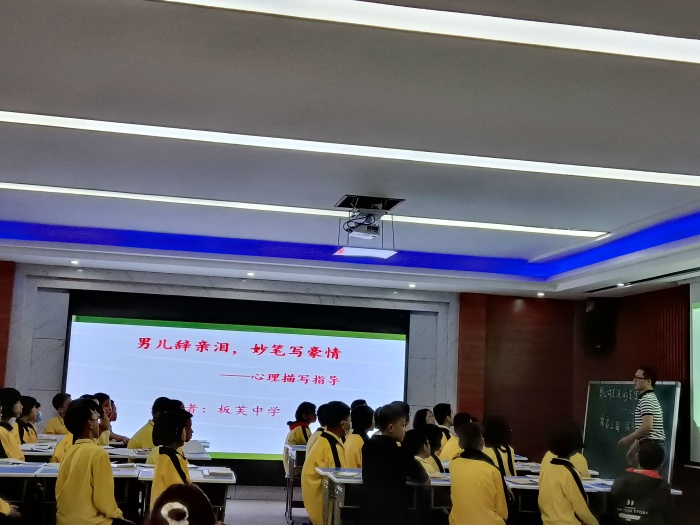 羅廣英老師結(jié)合板芙本土特色,以選拔紅色里溪講解員為引子,用小兵張嘎的影片細節(jié)切入,通過慢鏡頭再現(xiàn)、下水文細致指導(dǎo)動作、心理描寫的具體方法。同方學(xué)校劉文靜老師巧妙結(jié)合時政熱點,通過“晚舟歸國”與《長津湖》畫面指導(dǎo)動作描寫。板芙一中王群老師課堂沉穩(wěn),通過有梯度的教學(xué)設(shè)計將重難點一一突破。板芙中學(xué)陳軍強老師以《男兒辭親淚,妙筆寫豪情》為題,以“淚”為切入點,充分展現(xiàn)寫后的指導(dǎo)才能。