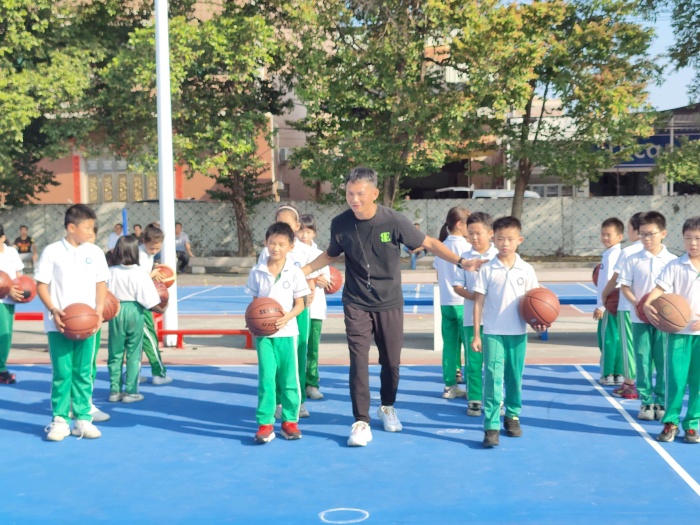 安堂小學(xué)黃昆明老師在籃球場(chǎng)上給龍港小學(xué)的學(xué)生們上了一節(jié)精彩的籃球訓(xùn)練課。黃老師將如何運(yùn)球,如何控球的方法給孩子們作了細(xì)致的講解,并通過老師的動(dòng)作示范。課上,孩子們學(xué)習(xí)興致極高,很快就學(xué)會(huì)了老師所教授的運(yùn)球技巧。