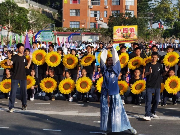 緊隨入場(chǎng)的是各班級(jí)方隊(duì),他們身著班服,面帶陽(yáng)光笑容,朝氣蓬勃,活力四射。每個(gè)班的入場(chǎng)式具有明顯風(fēng)格特色,主題鮮明而靈活多變,令人耳目一新。尤其是部分班級(jí)同學(xué)們的手工制作道具,讓人“驚喜不斷”。高一年級(jí)以“擁抱大灣區(qū)”為主題,每個(gè)班級(jí)對(duì)應(yīng)一個(gè)大灣區(qū)城市,演繹人文風(fēng)情,展示城市風(fēng)采,彰顯城市魅力。高二年級(jí)以“起航新中山”為主題,每個(gè)班級(jí)對(duì)應(yīng)中山一個(gè)鎮(zhèn)區(qū),“一鎮(zhèn)一特色”、“一鎮(zhèn)一品牌”,以新視角呈現(xiàn)發(fā)展新格局。高三年級(jí)以“奮進(jìn)西林山”為主題,每個(gè)班級(jí)展現(xiàn)一個(gè)學(xué)習(xí)生活場(chǎng)景,高雅藝術(shù)與流行藝術(shù)的融合、傳統(tǒng)文化與時(shí)尚潮流的碰撞,自信有禮與陽(yáng)光奮進(jìn)的輝映,綻放別樣青春風(fēng)采。
