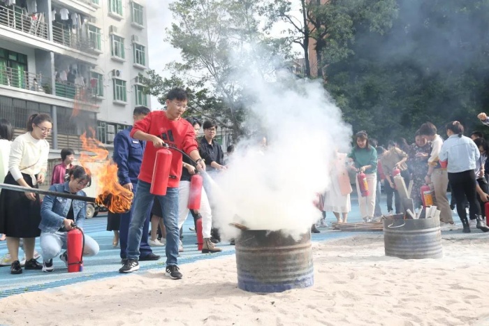 為了讓教職人員進(jìn)一步掌握消防知識(shí)和正確使用滅火器,演練結(jié)束后,學(xué)校請(qǐng)?zhí)厍谡救藛T再次進(jìn)行消防知識(shí)培訓(xùn)和現(xiàn)場(chǎng)滅火教學(xué),部分教師、保安、后勤人員參加了培訓(xùn),并在培訓(xùn)結(jié)束后,手持滅火筒對(duì)準(zhǔn)火源進(jìn)行滅火操作,通過(guò)親身實(shí)踐,熟練掌握滅火器的正確使用方法。