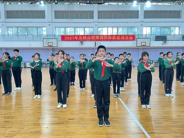 為促進(jìn)良好班級風(fēng)貌,形成健康向上、積極進(jìn)取的學(xué)習(xí)風(fēng)氣,彰顯校園文化特色,11月19日,五桂山學(xué)校利用大課間的時(shí)間,在體育館舉辦六年級《聽我說 謝謝你》手語操比賽。六年級5個(gè)班級全體學(xué)生參加此次活動(dòng),德育處黃學(xué)富主任、各年級組長,大隊(duì)輔導(dǎo)員魏其標(biāo)老師擔(dān)任此次比賽的評委。
