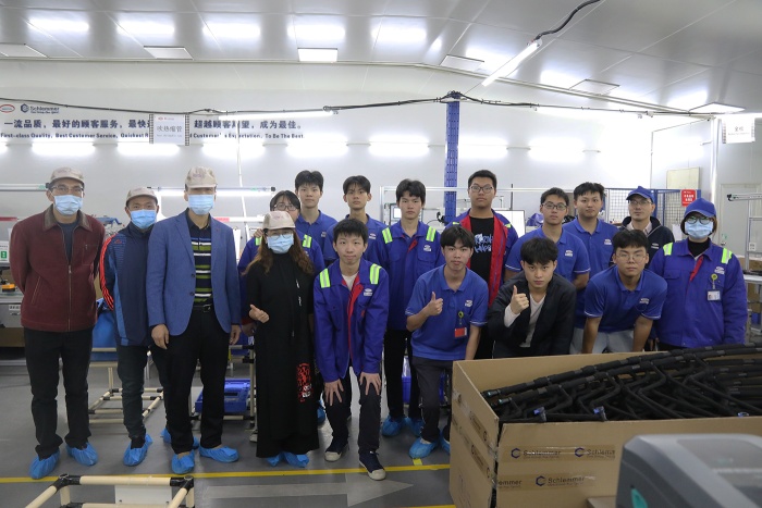 在人事部經理黃金鳳的帶領下,調研組一行深入了解學生的工作和生活情況。在車間里,調研組察看學生工作安全,了解學生工作流程,觀摩學生工作技能,感受學生生產的汽車配件,調查學生滿意程度,詢問學生生活情況;在午餐時,調研組走進學生午餐點,察看學生午餐菜式,詢問學生每日三餐的伙食情況。
