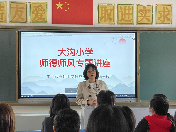 14日上午,送教教師與大溝小學(xué)行政齊聚會議室,陳玉玲校長結(jié)合學(xué)校的基本情況、辦學(xué)理念、辦學(xué)特色等與大溝小學(xué)行政領(lǐng)導(dǎo)進(jìn)行辦學(xué)理念研討,并作以“師者,以德為先”為主題的師德師風(fēng)專題講座。