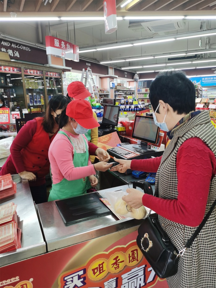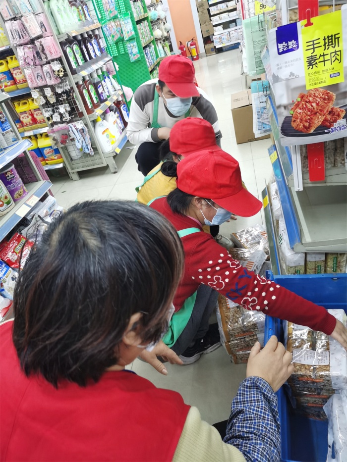 開始實習前,店長向師生們簡要介紹了超市情況。老師根據(jù)學生的特點將學生分到收銀組、清潔組和理貨組。為了讓所有學生體驗到每個小組的工作,老師安排小組成員按時進行輪換。收銀實習時,同學微笑著向顧客問好,同時熟練地操作收銀系統(tǒng),置禾超市收銀員夸贊同學們“操作準確,學習能力強!”清潔實習時,同學們認真、細致地進行清掃,將貨架底部也清潔干凈。理貨實習時,同學們認真聽工作人員講解擺貨要求,并有條不紊地進行實操,令超市工作人員頻頻豎起大拇指。