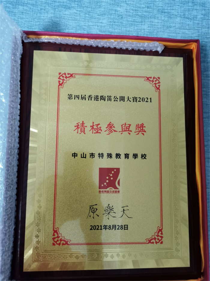 “老師,我拿到銅獎了!”梁子鍵興致勃勃地向身邊老師報喜。實際上子鍵自己也是一名小老師,自畢業(yè)后一直在中山特校陶笛工作室擔(dān)任助教工作,這次參加第四屆香港陶笛公開大賽,依舊表現(xiàn)優(yōu)秀。