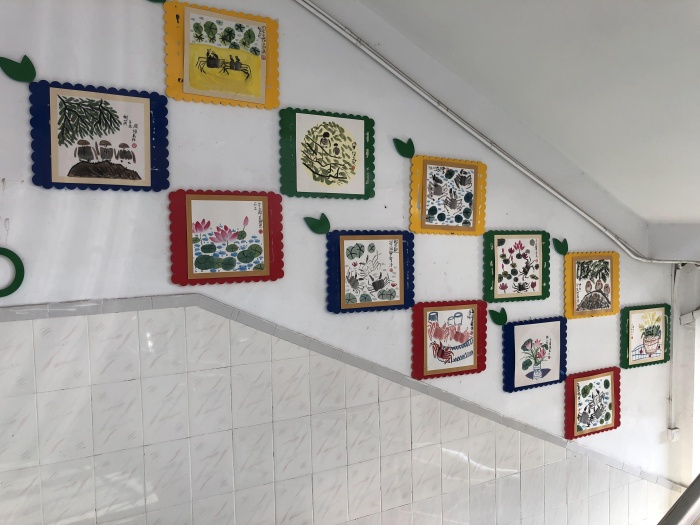 除此之外,安阜小學(xué)本次元旦畫展的一大亮點是傳達了環(huán)保的理念:學(xué)校美術(shù)興趣小組的同學(xué)們在老師的帶領(lǐng)下把鼓號隊置換下來的舊小鼓變成了畫布,創(chuàng)作了一系列鼓面裝飾畫。為畫展增添了活潑的色彩。