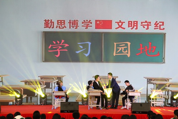 演出結(jié)束后,評(píng)出一等獎(jiǎng)十名,他們分別是一(1)班舞蹈《天天向上》、二(5)班舞蹈《阿拉伯之夜》、三(2)班舞蹈《媽媽寶貝》、四(5)班合唱《強(qiáng)國(guó)少年》、五(5)班舞蹈《少年志》、六(2)班舞蹈《大魚》,七(1)班小品《向領(lǐng)導(dǎo)匯報(bào)》、七(2)班小品《占位子》、九(2)班舞蹈《青花瓷》、九(4)班小品《走過場(chǎng)》,學(xué)校領(lǐng)導(dǎo)分別為獲獎(jiǎng)班級(jí)頒發(fā)獎(jiǎng)狀。