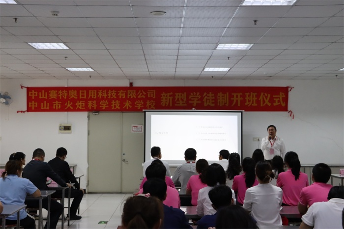 2023年3月15日,中山市火炬科學(xué)技術(shù)學(xué)校與中山賽特奧日用科技有限公司新型學(xué)徒制開班儀式在賽特奧公司舉行?;鹁婵萍紝W(xué)校校長(zhǎng)陳建國(guó)、副校長(zhǎng)王劍勤、校企合作處副主任鄧明、中山市人力資源和社會(huì)保障局小欖分局朱嘉敏副局長(zhǎng)、賽特奧公司董事顏發(fā)廣、高級(jí)經(jīng)理鄒秋娟,以及相關(guān)老師、公司員工參加開班儀式。開班儀式由賽特奧公司人力資源部林創(chuàng)英主持。