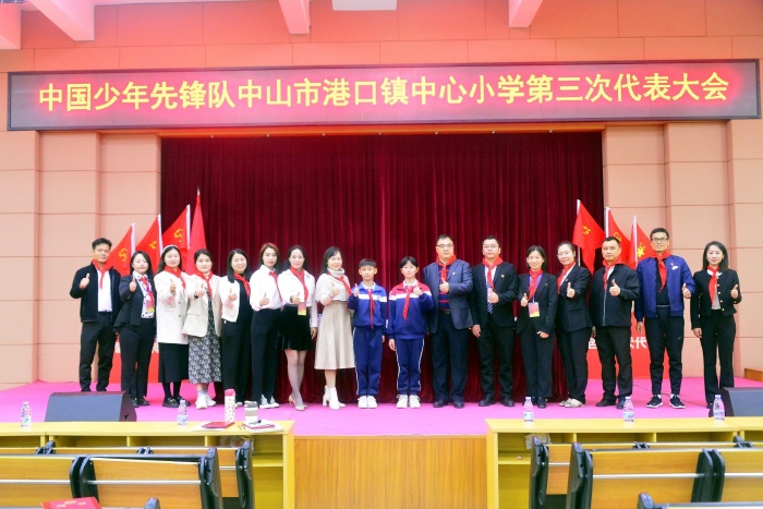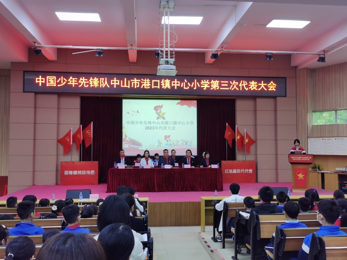 在嘹亮的國歌聲、高昂的隊歌聲中,在鮮艷的隊旗下,中國少年先鋒隊港口鎮(zhèn)中心小學召開第三次少先隊員代表大會正式拉開帷幕。