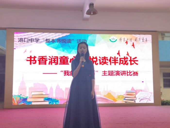 書籍滲透人心,伴隨血液循環(huán),港口中學(xué)師生一起沉浸在濃濃的翰墨書香中,不斷學(xué)習(xí),不斷成長。本次“書香潤童心,悅讀伴成長”——“我的閱讀歷”主題演講比賽活動立足于學(xué)生的整本書悅讀實踐,是學(xué)生閱讀經(jīng)歷,閱讀體驗,閱讀能力的提升過程,有利于營造良好的書香校園氛圍,不斷提高學(xué)生整本書閱讀能力,在“悅讀”中成長。