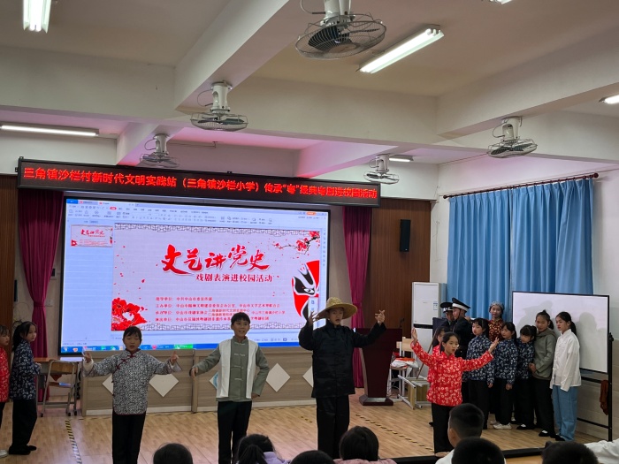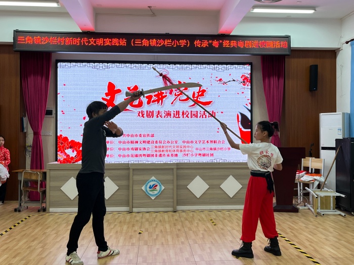 為了進一步展現(xiàn)中華優(yōu)秀傳統(tǒng)文化,豐富校園生活,培養(yǎng)孩子們的戲曲素養(yǎng),提高學校師生對粵劇文化的了解,3月28日下午,中山市花錦繡粵劇團非遺傳承基地的老師們,為三角鎮(zhèn)沙欄小學師生們帶來了一場精彩紛呈的視聽盛宴!讓學生看粵劇、聽粵劇、學粵劇、親身體驗粵劇。