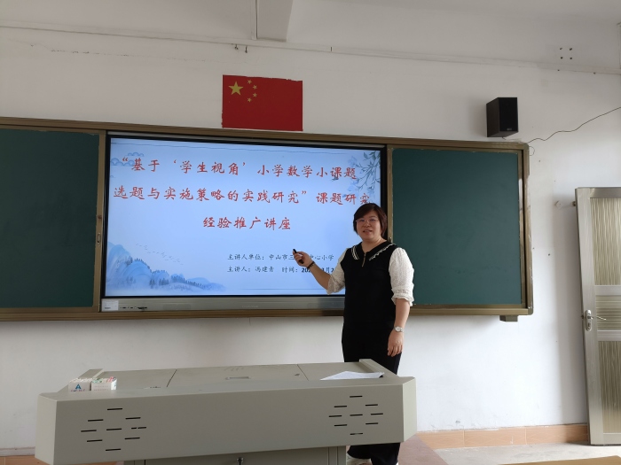 本次對口幫扶活動(dòng),三角鎮(zhèn)中心小學(xué)教導(dǎo)處馮建青主任還以《如何指導(dǎo)小學(xué)生開展數(shù)學(xué)小課題研究》為主題開展了交流分享會(huì)。馮主任在小課題研究頗有心得,2021年主持了鎮(zhèn)級(jí)重點(diǎn)課題《基于‘學(xué)生視角’小學(xué)數(shù)學(xué)小課題選題與實(shí)施策略的實(shí)踐研究》,帶領(lǐng)學(xué)校老師和學(xué)生連續(xù)幾年獲得了中山市小課題研究一等獎(jiǎng)的榮譽(yù)。本次分享會(huì)馮主任從確定研究主題、組建研究隊(duì)伍、確定研究內(nèi)容、撰寫研究方案、開展研究活動(dòng)、整理研究成果六個(gè)方面分享了她在指導(dǎo)小學(xué)生開展數(shù)學(xué)小課題研究的做法。分享會(huì)最后,兩校教師還交流學(xué)習(xí)了馮主任帶來的小課題資料書。生活中有許許多多的“小課題”,相信聽了本次的分享會(huì),教師們會(huì)有更多研究啟發(fā)!