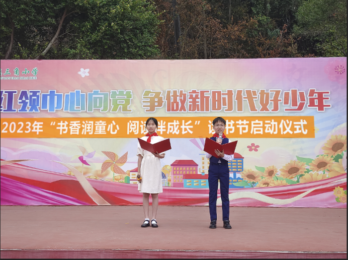 啟動(dòng)儀式第二項(xiàng),由三角小學(xué)副校長(zhǎng)黃麗娟宣讀《三角鎮(zhèn)三角小學(xué)2023年“書(shū)香潤(rùn)童心,閱讀伴成長(zhǎng)”讀書(shū)節(jié)活動(dòng)方案》。黃副校長(zhǎng)向全體同學(xué)發(fā)出倡議,號(hào)召同學(xué)們積極參加讀書(shū)節(jié)的各項(xiàng)活動(dòng),將知識(shí)運(yùn)用到學(xué)習(xí)及生活當(dāng)中,努力做到知行合一。