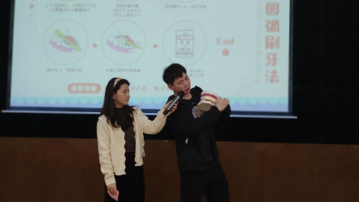 活動(dòng)伊始,新聯(lián)小學(xué)校長(zhǎng)吳肇葵感謝板芙鎮(zhèn)相關(guān)部門為學(xué)校師生帶來(lái)知識(shí)講座。他結(jié)合自身成長(zhǎng)經(jīng)歷告訴學(xué)生口腔保護(hù)以及毒品預(yù)防的重要性,提醒學(xué)生在講座中要認(rèn)真傾聽。板芙醫(yī)院口腔科醫(yī)生羅睿用通俗易懂的語(yǔ)言為同學(xué)們科普了豐富有趣的口腔健康知識(shí)。他從口腔存在的普遍問(wèn)題,窩溝齲的發(fā)展過(guò)程及口腔保健等多方面詳細(xì)闡述了口腔保健的重要性,并強(qiáng)調(diào)生活中要養(yǎng)成早晚刷牙、飯后漱口等良好的好習(xí)慣。然后,他還通過(guò)圖文和實(shí)物模型結(jié)合的形式為孩子演示正確的刷牙方式,同學(xué)們聽得津津有味,跟著羅睿醫(yī)生的步驟逐步學(xué)習(xí)正確、科學(xué)的刷牙方式。