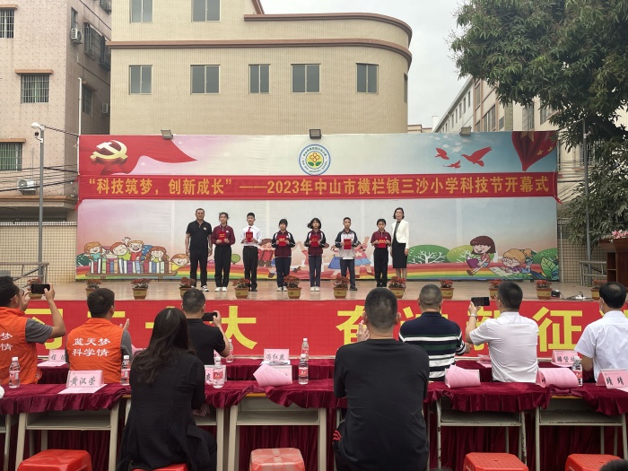 陽春三月,柳細(xì)風(fēng)斜。為進(jìn)一步在全校大力普及科學(xué)知識(shí),弘揚(yáng)科學(xué)精神,形成學(xué)科學(xué)、愛科學(xué)、用科學(xué)的良好氛圍,讓同學(xué)們?cè)趨⑴c中培養(yǎng)創(chuàng)新精神和創(chuàng)新能力,激發(fā)參與科學(xué)實(shí)踐探究活動(dòng)的興趣,提高科學(xué)文化素質(zhì),2023年3月27日上午,橫欄鎮(zhèn)三沙小學(xué)舉行了隆重的科技節(jié)開幕式活動(dòng)。