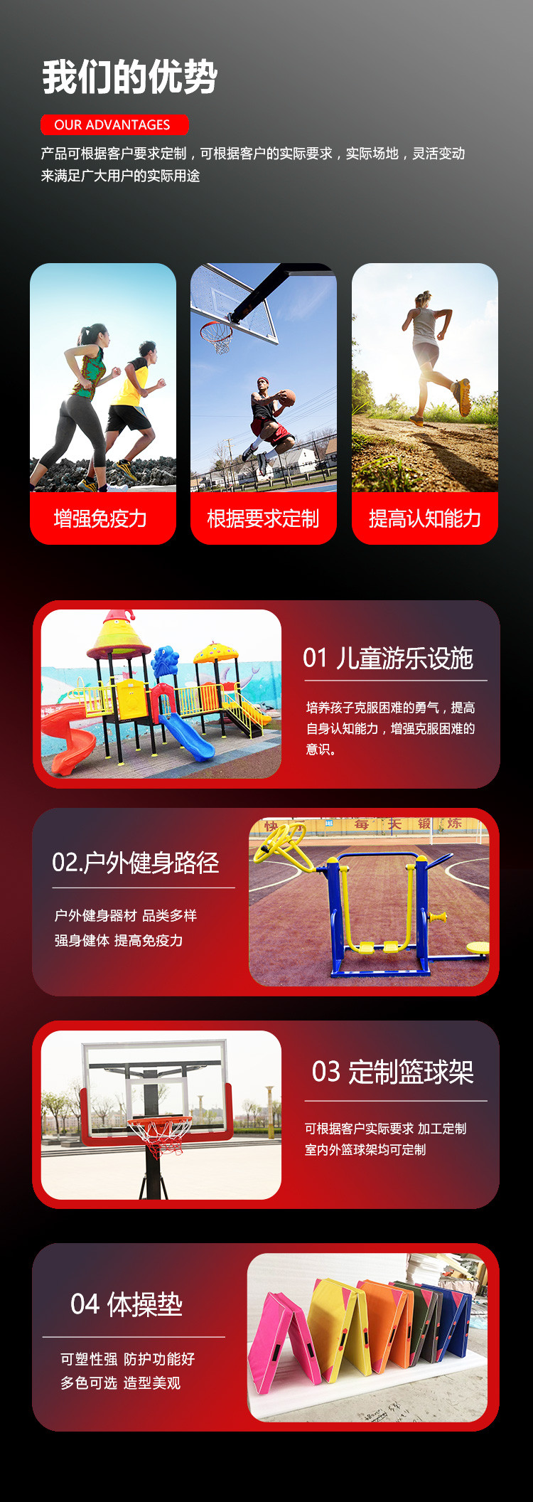 我公司主要經(jīng)營(yíng)各種籃球架、羽毛球、乒乓球、排球、足球、網(wǎng)球、體操訓(xùn)練器械、健身器材、塑膠
