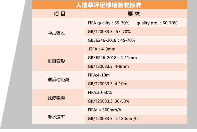 (1)出于安全考慮,2001年國(guó)際足聯(lián)頒布了人造草足球場(chǎng)地驗(yàn)收標(biāo)準(zhǔn),規(guī)定沖擊吸收需達(dá)到55-70% ,比國(guó)際田聯(lián)規(guī)定的塑膠跑道沖擊吸收35-50%要高出20%,2006年,國(guó)家質(zhì)監(jiān)總局與國(guó)家標(biāo)準(zhǔn)化管理委員會(huì)發(fā)布了GB/T 20033.3國(guó)家標(biāo)準(zhǔn),規(guī)定沖擊吸收為55-70%。