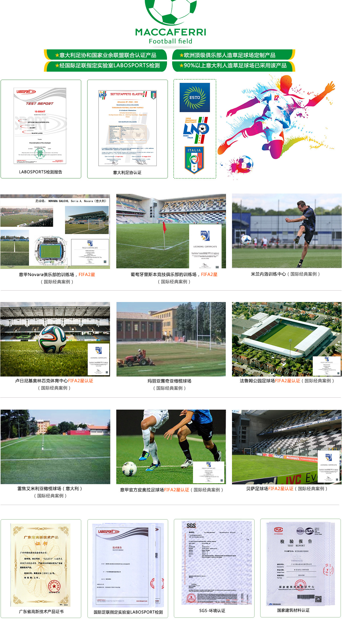 已先后通過(guò)國(guó)際足聯(lián)(FIFA)、意大利足協(xié)(F.I.G.CLND)和意大利業(yè)余足球聯(lián)盟等機(jī)構(gòu)認(rèn)證。