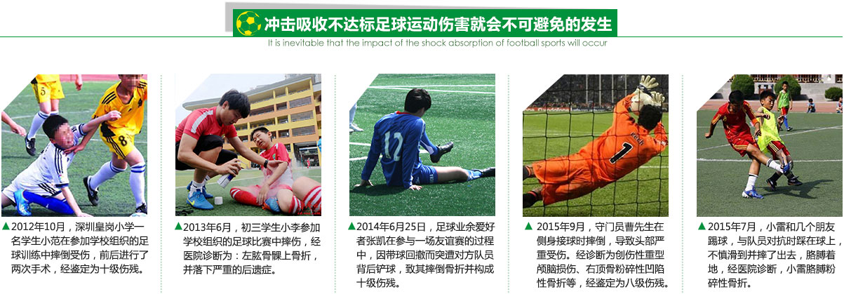 (2)該標(biāo)準(zhǔn)主要是基于足球運(yùn)動(dòng)的特點(diǎn),第一是比賽時(shí)間長(zhǎng),對(duì)運(yùn)動(dòng)員關(guān)節(jié)和脊椎的損傷會(huì)更大;第二是高速奔跑、對(duì)抗激烈,必然會(huì)導(dǎo)致奔跑摔跤、沖撞倒地、搶跳落地等,造成球員摔傷。