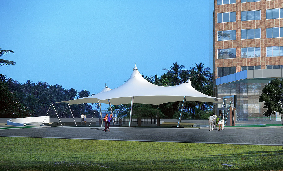 (7)適用廣。從氣候條件看,膜結(jié)構(gòu)建筑適用的地域廣闊;從規(guī)模上看,可以小到單人帳篷、花園小品,大到覆蓋幾萬、幾十萬平方米的建筑。甚至有人曾設(shè)想覆蓋一個小城,實現(xiàn)人造自然。