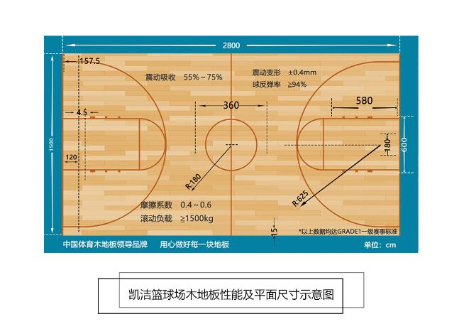 凱潔地板性能特點(diǎn): 產(chǎn)品名稱:運(yùn)動型木地板 用材:實(shí)木運(yùn)動地板 隔離膜 承載板 彈性龍骨 減震膠墊 執(zhí)行標(biāo)準(zhǔn):GB/T20239-2015 使用范圍:室內(nèi)籃球、羽毛球、舞臺、足排球、壁球、健身等綜合性運(yùn)動場所。 使用年限:25年 二 、變形 地板在動能荷載作用下,變形的能力取決于彈性、粘度和彈性層厚度。過多的變形會降低腳的安全性,增加扭傷發(fā)生的幾率。 三 、表面摩擦 表面摩擦極為重要且具有佳性。價(jià)值觀的變化而變化,根據(jù)不同的運(yùn)動。在運(yùn)行, 例如,大限度地堅(jiān)持腳和需要地板,而網(wǎng)球需要有控制的滑梯。在 無論如何,腳必須能夠很容易地旋轉(zhuǎn)。無阻塞或風(fēng)險(xiǎn)扭點(diǎn)支持。以 改善表面摩擦,合成材料壓花。 四 、球反彈 球的反彈是球類運(yùn)動中非常重要的一個(gè)因素。反彈必須是均勻的和規(guī)則的整個(gè)表面。 更重要的是,地板不應(yīng)吸收反彈等。在這種情況下不可能進(jìn)行正規(guī)的比賽。 表面。國際籃球聯(lián)合會章程規(guī)定球的反彈高度落在 打面高度1.8米必須至少90% 附上:籃球地板表面摩擦和反彈力圖示: