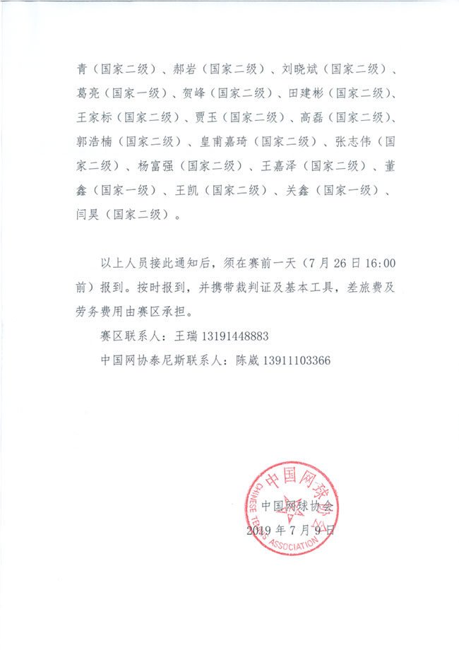 關(guān)于選派2019年中國業(yè)余網(wǎng)球公開賽日照鉆石賽技術(shù)官員的通知