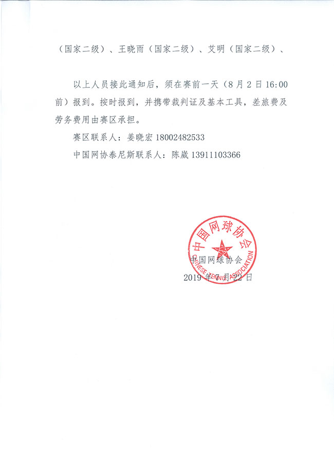 關(guān)于選派2019年中國業(yè)余網(wǎng)球公開賽阜新白金賽技術(shù)官員的通知