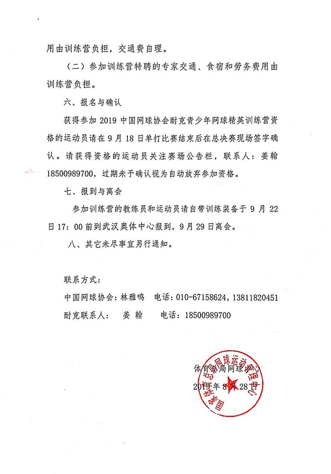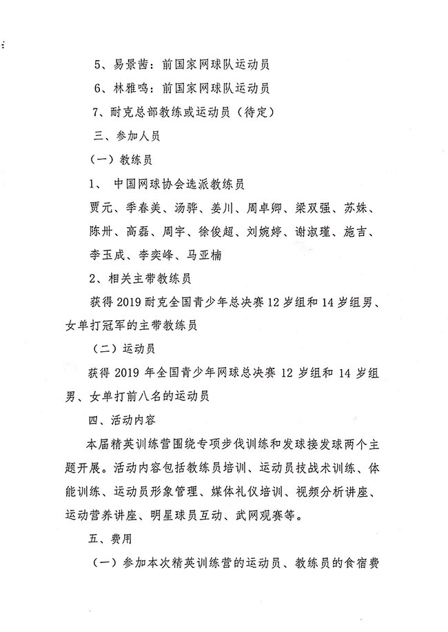 體育總局網(wǎng)球中心關(guān)于舉辦2019中國網(wǎng)球協(xié)會(huì)耐克青少年網(wǎng)球精英訓(xùn)練營的通知