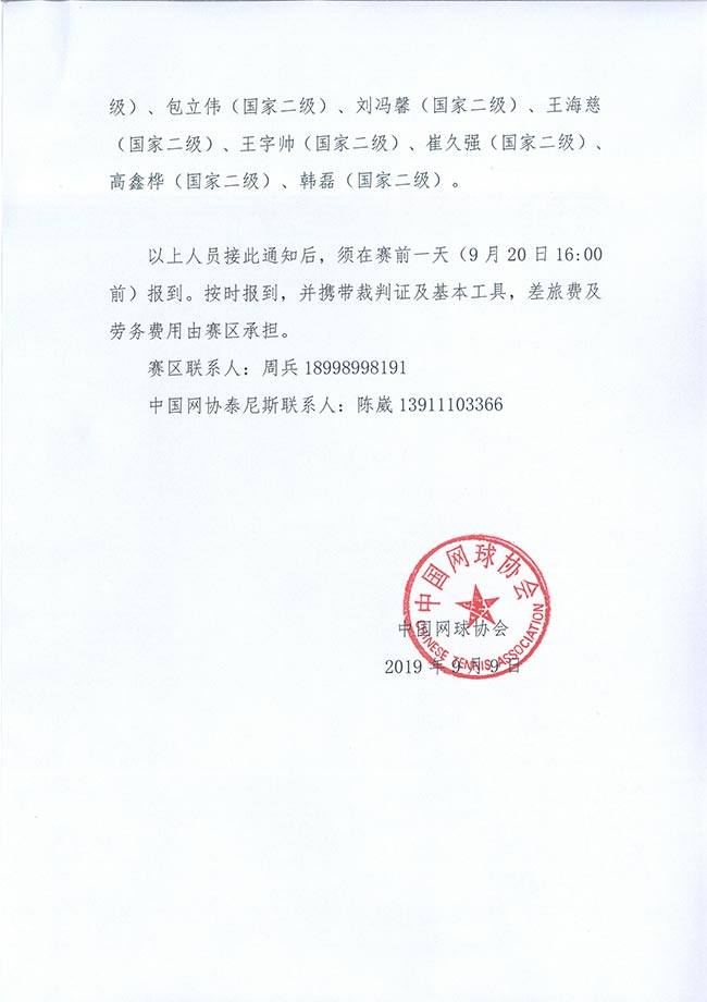 關(guān)于選派2019年中國(guó)業(yè)余網(wǎng)球公開賽濟(jì)南白金賽技術(shù)官員的通知