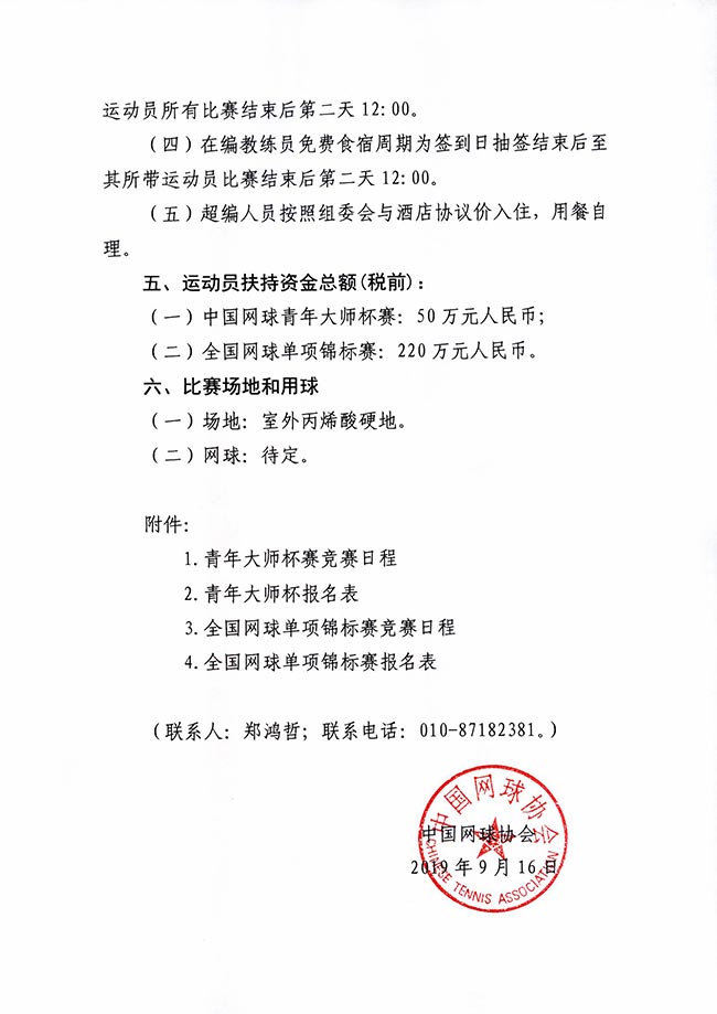 1.2019年中國(guó)網(wǎng)球青年大師杯(中國(guó)網(wǎng)球未來(lái)之星大獎(jiǎng)賽)日程安排