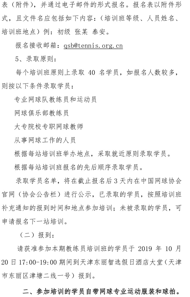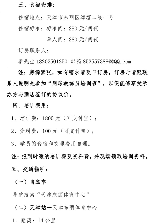 中國網(wǎng)球協(xié)會2019年初級教練員培訓班(天津站)補充通知