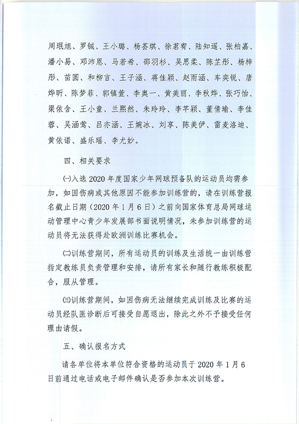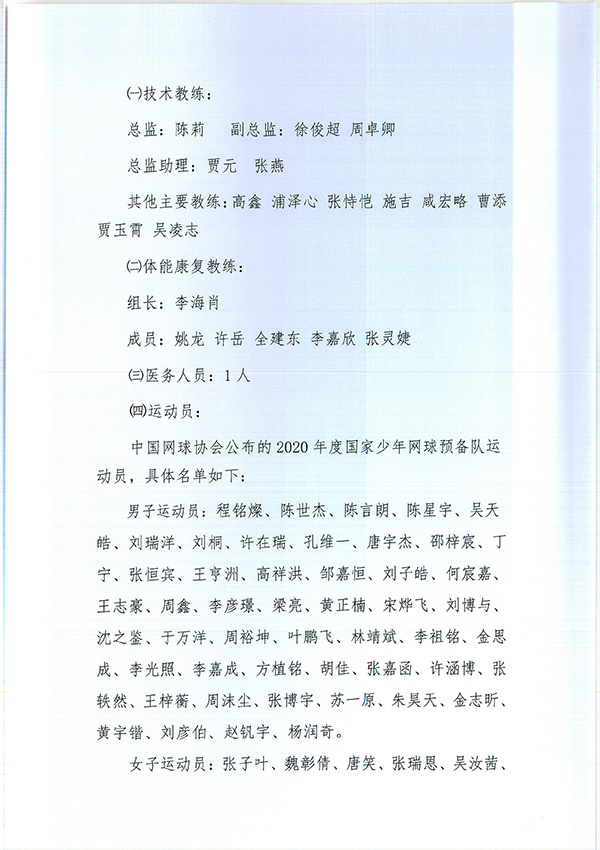 關(guān)于公布2020年國(guó)家青少年網(wǎng)球隊(duì)相關(guān)人員組成名單的通知