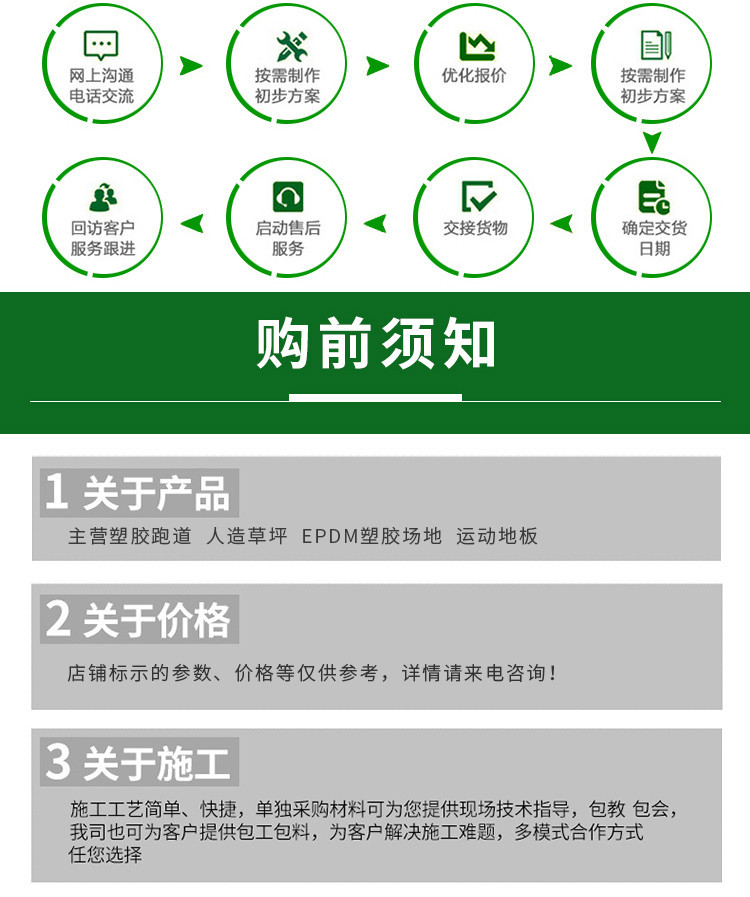 ??我公司擁有先進(jìn)的工藝技術(shù)和機(jī)械加工設(shè)備。專業(yè)生產(chǎn)各種規(guī)格的人工草坪、EPDM彩色橡膠顆粒、膠水等。廣泛應(yīng)用于塑膠跑道、籃球場(chǎng)、足球場(chǎng)、網(wǎng)球場(chǎng)、游泳池、體育場(chǎng)館運(yùn)動(dòng)地面、幼兒園防滑地面等。該產(chǎn)品具有綠色環(huán)保、色澤穩(wěn)定且抗紫外線、耐磨損、彈性好,使用壽命長(zhǎng),易鋪設(shè)保養(yǎng)等優(yōu)點(diǎn)。產(chǎn)品經(jīng)上海和深圳檢測(cè)中心檢測(cè),各項(xiàng)技術(shù)指標(biāo)全部合格,達(dá)到行業(yè)標(biāo)準(zhǔn)。 我們本著以質(zhì)量求生存,以周到的服務(wù)求發(fā)展,熱忱歡迎海內(nèi)外廣大客戶和我們合作,攜手共創(chuàng)輝煌!