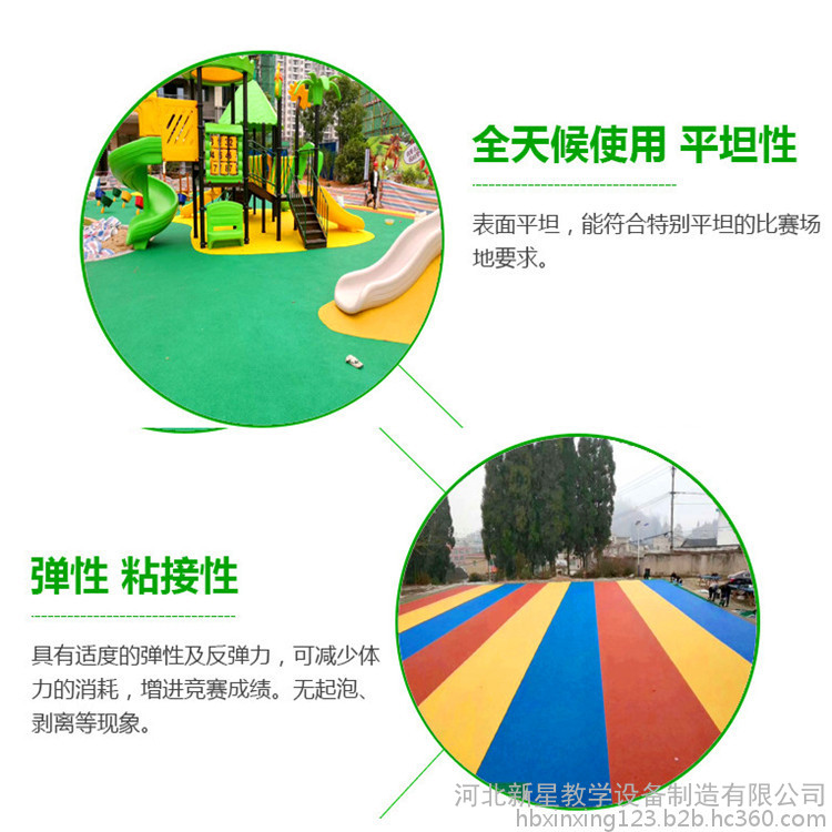 EPDM具有卓越的耐環(huán)境老化、耐熱老化性、耐臭氧性、耐化學(xué)介質(zhì)性、耐水性和耐低溫性,并且有良好的電絕緣性和彈性,以及優(yōu)異的色彩穩(wěn)定性,制品顏色經(jīng)久不變。 是由表層EPDM彩色橡膠層與黑色橡膠緩沖層組成,各種顏色可搭配,可隨意鋪不同的顏色或單種顏色,特別適合于幼兒園,滿足幼兒心理特點,還可直接鋪在混凝土面層上,與傳統(tǒng)的聚胺酯跑道相比可節(jié)省大量地基成本。
