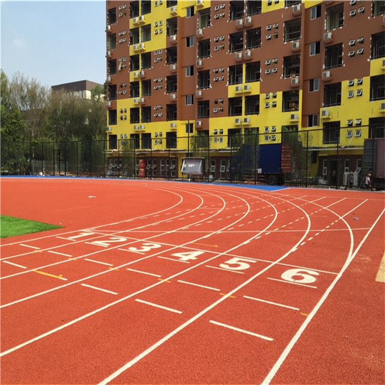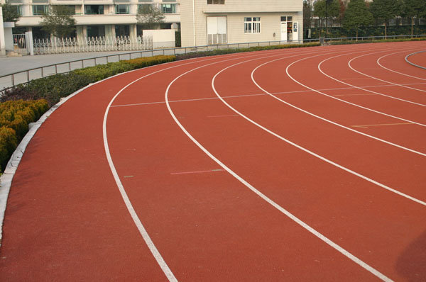 將表層雙組份特種面漿按1:2要求配制好, 用專用設(shè)備鋪裝面層,在該層全聚酯膠漿完全固化前即可形成其表面防滑、耐磨紋理,其防滑效果完全可達(dá)到國際田聯(lián)的標(biāo)準(zhǔn)。