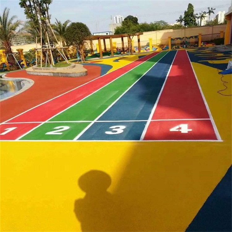 3、機(jī)械噴涂面層1.5mm厚,單組份膠粘劑+EPDM顆粒,再反方向噴涂一遍。