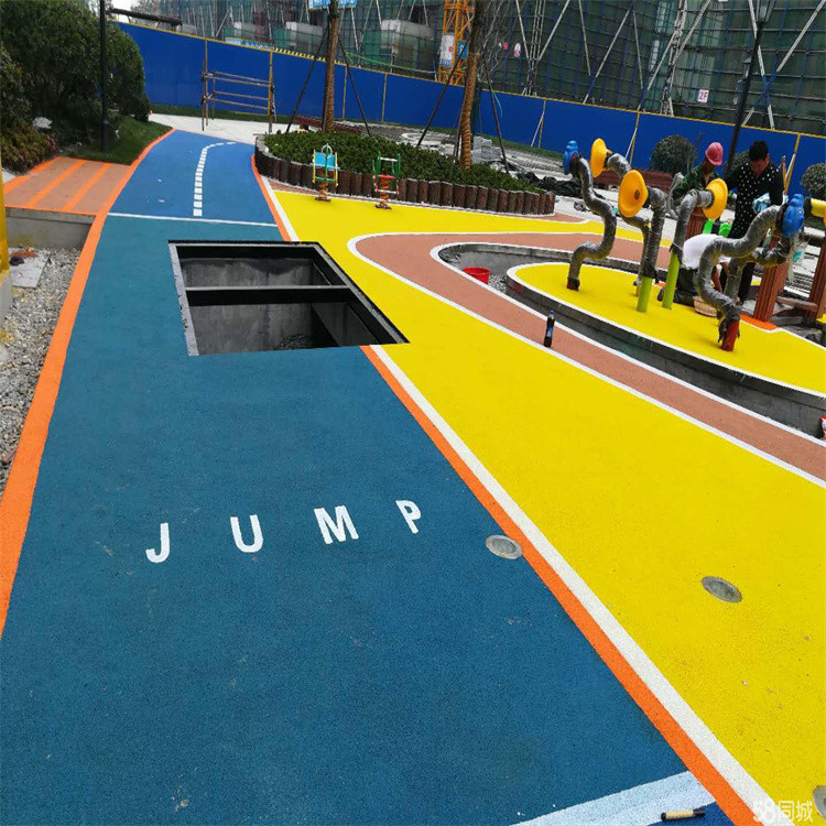 (3) 在充分準(zhǔn)備的前提下,了解天氣趨勢(shì),并測(cè)定當(dāng)時(shí) 地面含水率≤10,向監(jiān)理工程師報(bào)告得到允許后進(jìn)行基材攤鋪工 序。①、基材混合攪拌 1)材料攪拌場(chǎng)所應(yīng)鋪設(shè)膠布或塑料布,避免沾污地面損及施工品質(zhì) 及影響環(huán)境清潔。 2)攪拌桶之容量為攪拌量的 1.5-2 倍,使用前攪拌桶應(yīng)干燥及清潔。 3)混合材料時(shí)應(yīng)先倒入單組分粘接劑并使攪拌桶邊全面浸附后再倒 入黑膠粒。
