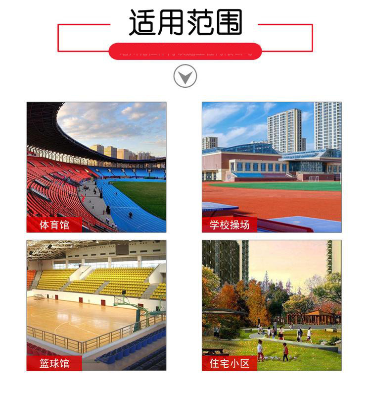 體育設(shè)施設(shè)施工程注意事項(xiàng)(1)塑膠跑道,適合普通短釘運(yùn)@動鞋釘長6mm)、訓(xùn)練鞋、橡膠帆布鞋或軟橡膠鞋。塑膠跑道只作訓(xùn)練與比賽活動之用,得作其他用途。(2)塑膠跑道上jìn止一切車輛行駛,跑道上避免機(jī)械劇烈沖擊和摩擦。??(3)塑膠跑道邊緣應(yīng)加保護(hù),不得任意剝動,如發(fā)現(xiàn)損壞應(yīng)及時修補(bǔ)。(4)避免接@觸有機(jī)溶劑、化學(xué)物品。(5)保持清潔,可以用水沖洗,粘上油污可用10%氨水或洗滌劑擦洗干凈。(6)訓(xùn)練時,將人員平均分布在各條跑道上,避免造成場地使用不均。?(7)jìn止xī煙亂投煙蒂、口香糖或hán糖飲料。體育設(shè)施工程有限公@司遵循精益qiú精的質(zhì)量方zhēn,憑借豐富的生產(chǎn)經(jīng)驗(yàn),專注于跑道、球場等體育設(shè)施用聚氨酯材料的創(chuàng)新研發(fā)及生產(chǎn)。