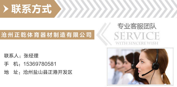 滄州正乾體育器材制造有限公司位于全國聞名的石油化工基地和北方重要陸海交通樞紐滄州,在公司發(fā)展壯大的時間內(nèi),我們始終為客戶提