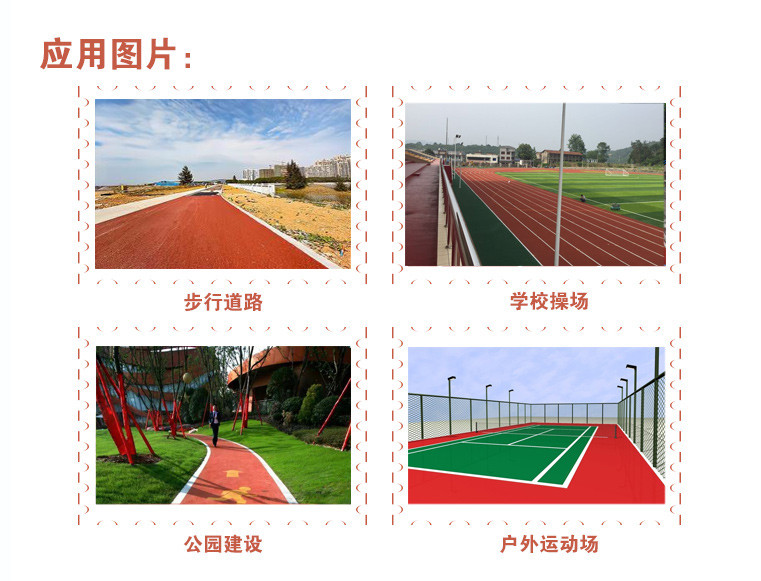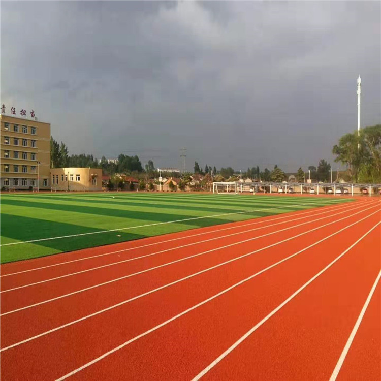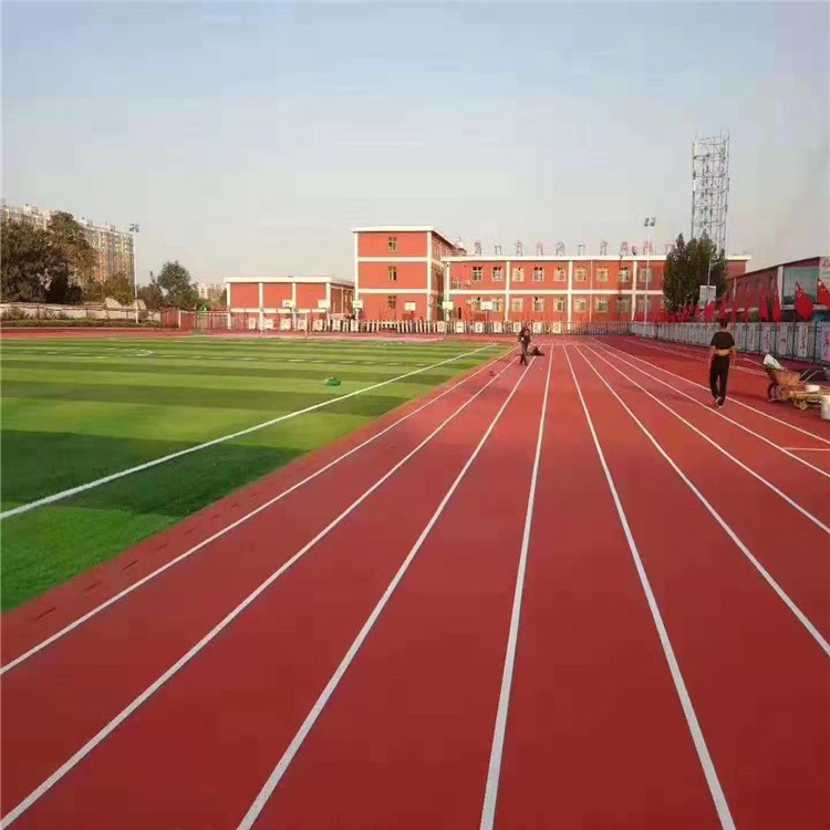 或PU顆粒、顏料、助劑、填料組成。塑膠跑道具有平整度好、抗壓強(qiáng)度高、硬度彈性適當(dāng)、物