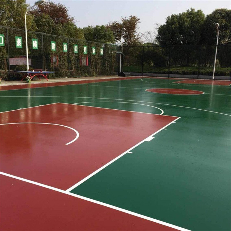 6. 平整度校檢找平:為保證整個場地鋪裝平整,厚度均勻,施工前用自來水對整個場地進行澆水,澆水要全面徹底,且要采用慢注漫流、嚴禁強沖,待積水處理干后,凹陷積水之處用筆做好記號,用混合底料補平,直到將整個場地凹陷處補平,沒有積水現(xiàn)象為止。