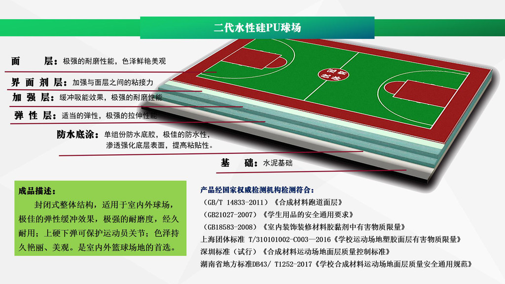 4mm二代水性硅PU環(huán)保塑膠球場(chǎng)材料,出廠材料價(jià)67元/平方。無需客戶準(zhǔn)備其他輔助材料,連劃線漆都含在內(nèi)了。二代品質(zhì),水性材料,可以說是現(xiàn)場(chǎng)加工型塑膠球場(chǎng)中最環(huán)保、最****的塑膠球場(chǎng)種類。特別適合**運(yùn)動(dòng)場(chǎng)使用。一般政府定額價(jià)格都在190元/平以上。而承建商從優(yōu)冠采購材料,優(yōu)冠幫您找工程隊(duì),材料+運(yùn)費(fèi)+施工≤90元/平,還含67元的17%增值稅專用**。用過我們優(yōu)冠材料的老客戶都知道這樣做**!