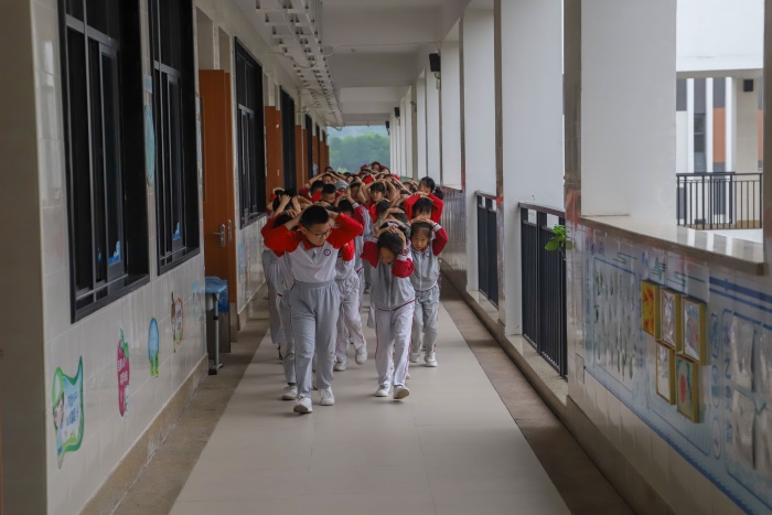 演練前,學(xué)校安全科結(jié)合實(shí)際情況,成立防震減災(zāi)演練工作指揮組,指揮組完善疏散演練方案,部署演練工作,明確疏散演練集合地點(diǎn)、疏散順序和注意事項(xiàng);各班召開防震自救專題班會(huì),讓學(xué)生了解應(yīng)急避震知識(shí)、熟悉逃生路線。演練開始后,各班老師們迅速到崗,當(dāng)聽到發(fā)生地震的警報(bào)時(shí),同學(xué)們迅速雙手抱頭,躲避在課桌下緊急避險(xiǎn),在老師的組織下,有序進(jìn)行撤離,用最短的時(shí)間,從教學(xué)樓上安全撤離到了指定地點(diǎn)。