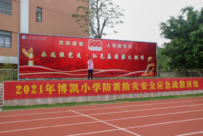 短短6分鐘內(nèi)全體師生都安全撤離到了校園操場和校門口兩個(gè)集合點(diǎn)。博凱小學(xué)唐秉晶校長和李先奇副校長分別對(duì)演練進(jìn)行了總結(jié)??隙巳熒谘菥氈凶龅秸J(rèn)真對(duì)待、有序撤離、效果良好。同時(shí),也對(duì)全校師生進(jìn)行了防震逃生知識(shí)的講解,使大家進(jìn)一步鞏固了防震知識(shí),熟悉火災(zāi)發(fā)生時(shí)緊急疏散的程序和線路,確保在火災(zāi)發(fā)生時(shí)能快速、高效、有序地撤離,最大限度地減輕災(zāi)害對(duì)師生造成的傷害。