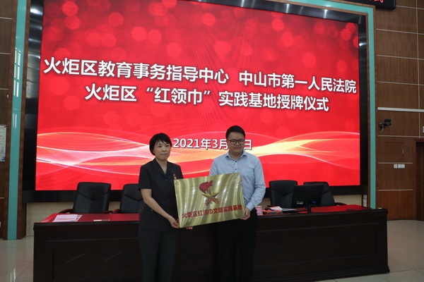 活動(dòng)首先進(jìn)行“法槌花開”簽約及火炬區(qū)“紅領(lǐng)巾”實(shí)踐基地授牌儀式,在全體與會(huì)人員的共同見證下,中山市第一法院審判管理辦公室負(fù)責(zé)人丁向娜與火炬開發(fā)區(qū)德育專干謝藝波上臺(tái)現(xiàn)場(chǎng)簽約,謝藝波代表火炬開發(fā)區(qū)教育事務(wù)指導(dǎo)中心向中山市第一人民法院授予“火炬區(qū)紅領(lǐng)巾文明實(shí)踐基地”牌匾。丁向娜表示,中山市第一人民法院開展“法槌花開”系列普法活動(dòng),旨在以法院現(xiàn)場(chǎng)研學(xué)、與法官面對(duì)面交流、法律知識(shí)問答、模擬法庭、法官體驗(yàn)等豐富形式,達(dá)到以真實(shí)體驗(yàn)潤(rùn)物無聲的普法效果,歡迎各學(xué)校組織學(xué)生到法院開展相關(guān)活動(dòng),進(jìn)一步提高學(xué)生法律和自我防范意識(shí)。