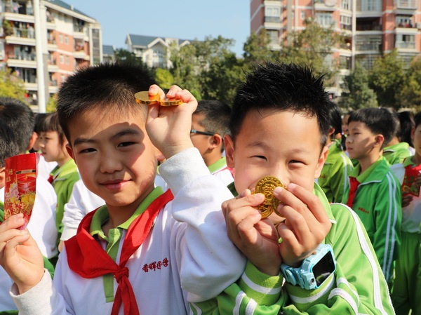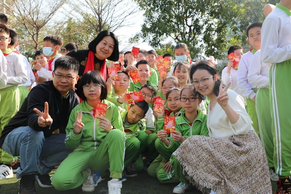 據(jù)悉,這些“利是”由學(xué)校德育處統(tǒng)一準(zhǔn)備,每個“利是”中裝著“金幣巧克力”,祝愿孩子們前程似金幣般閃耀奪目,生活似巧克力般甜蜜。最后,全體師生高舉“利是”,齊聲祝愿“新年快樂”,現(xiàn)場匯聚成一片紅色的歡樂海洋。