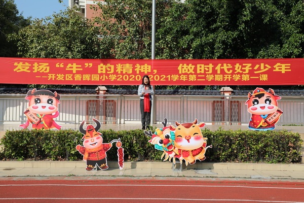 2月22日,開發(fā)區(qū)香暉園小學(xué)迎來了牛年的開學(xué)第一天,校園里洋溢著喜慶歡騰的氣氛。