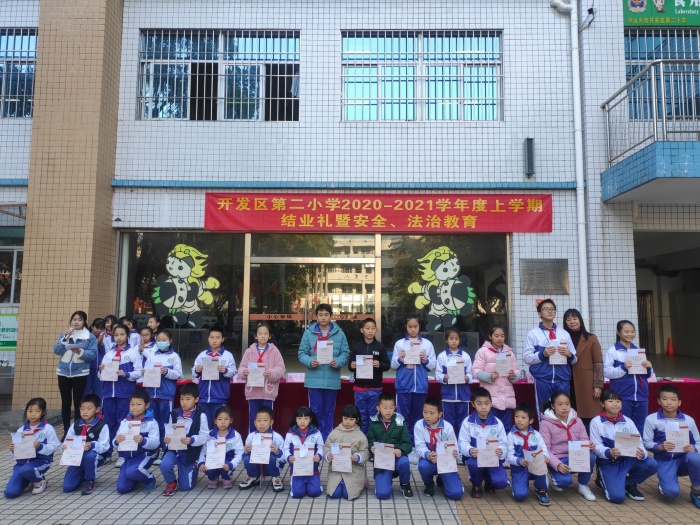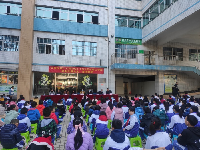 學(xué)海耕耘綻芬芳,情溢校園伴成長。不知不覺間收獲滿滿、內(nèi)容豐富的一學(xué)期迎來了尾聲,為了讓同學(xué)們度過一個安全、有意義的寒假,2021年1月15日上午,開發(fā)區(qū)第二小學(xué)在學(xué)校小操場舉辦了散學(xué)禮暨法治安全教育活動。活動由黃頌雅老師主持,全校師生共同參與。