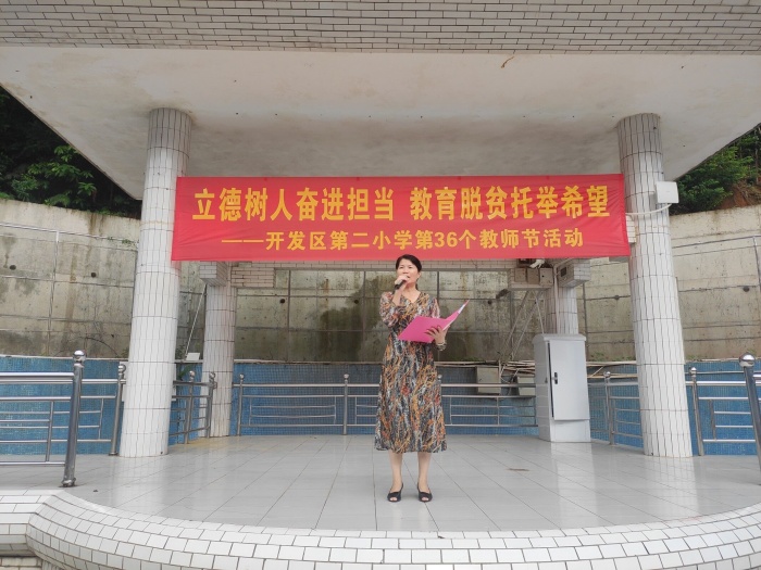 9月10日是第36個教師節(jié)。為持續(xù)實施“奮進(jìn)之筆”的進(jìn)展成效,展示廣大教師立足教育教學(xué)崗位,助力打贏新冠肺炎疫情防控阻擊戰(zhàn)、教育脫貧攻堅戰(zhàn)的精神風(fēng)貌。當(dāng)天早上,開發(fā)區(qū)第二小學(xué)全體師生齊聚學(xué)校操場舉行以“立德樹人奮進(jìn)擔(dān)當(dāng) 教育脫貧托舉希望”為主題的慶祝教師節(jié)活動。