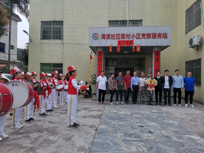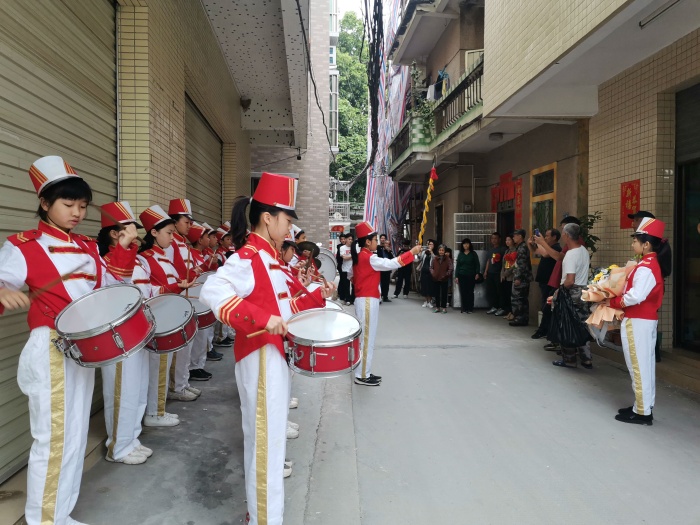 3月13日上午,火炬區(qū)第五小學的少先隊鼓號隊應社區(qū)邀請參加入伍新兵歡送活動。在鄭倩喜等老師的帶領下,參加了黎村小區(qū)的新兵入伍歡送儀式。